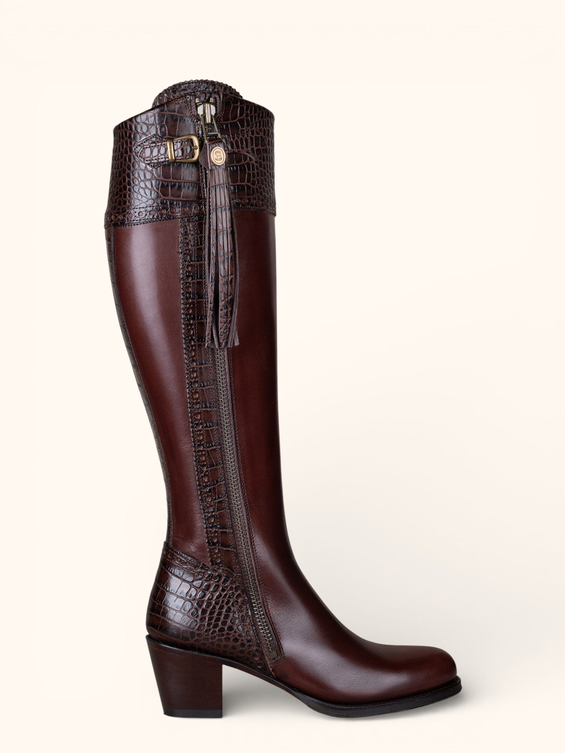 Tall Spanish Boots Heeled - Mock Croc Brown
