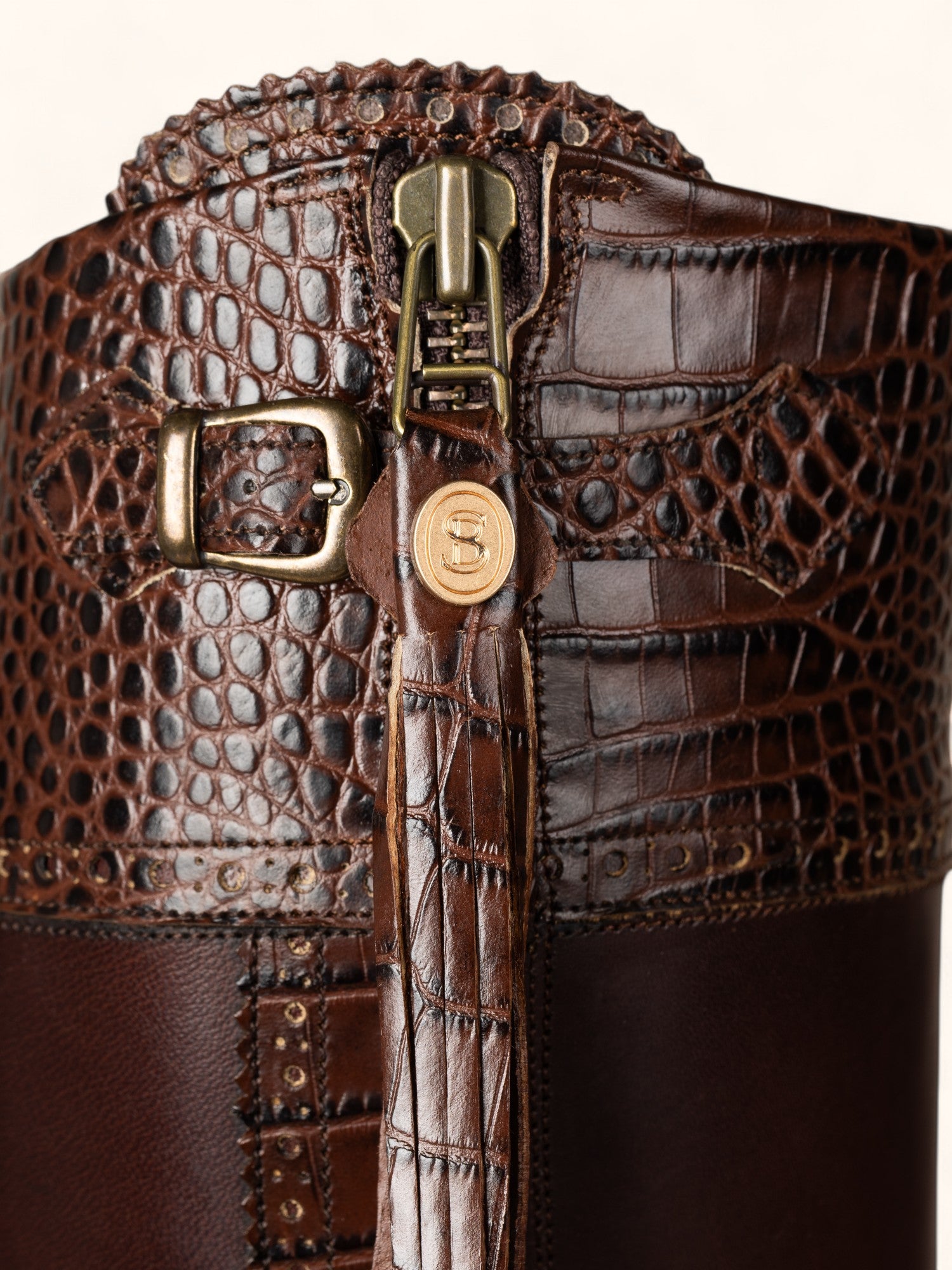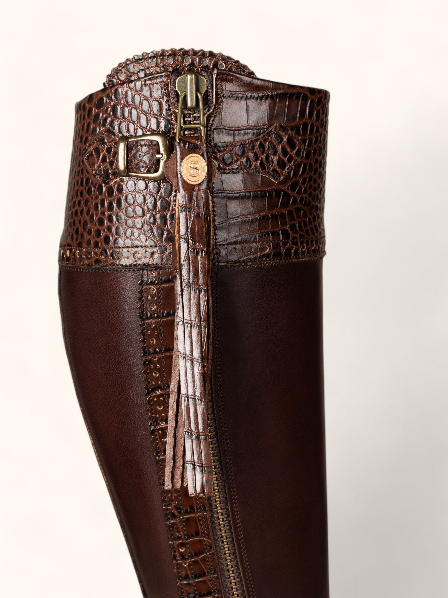 - Tall Spanish boots with mock croc detailing